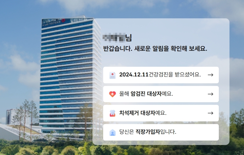 - 본인의 건강검진 대상 여부와 검진항목, 검진기관, 일정 확인