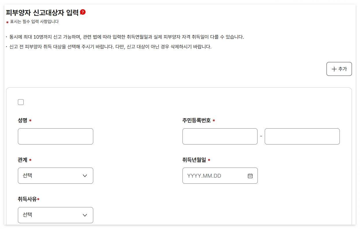 - 추가서류 (사실혼, 외국인, 장애인 등 특수사유 시 별도)