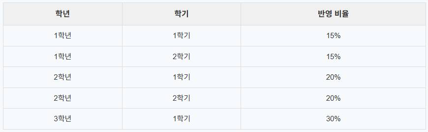 학년·학기별 내신 반영 비율